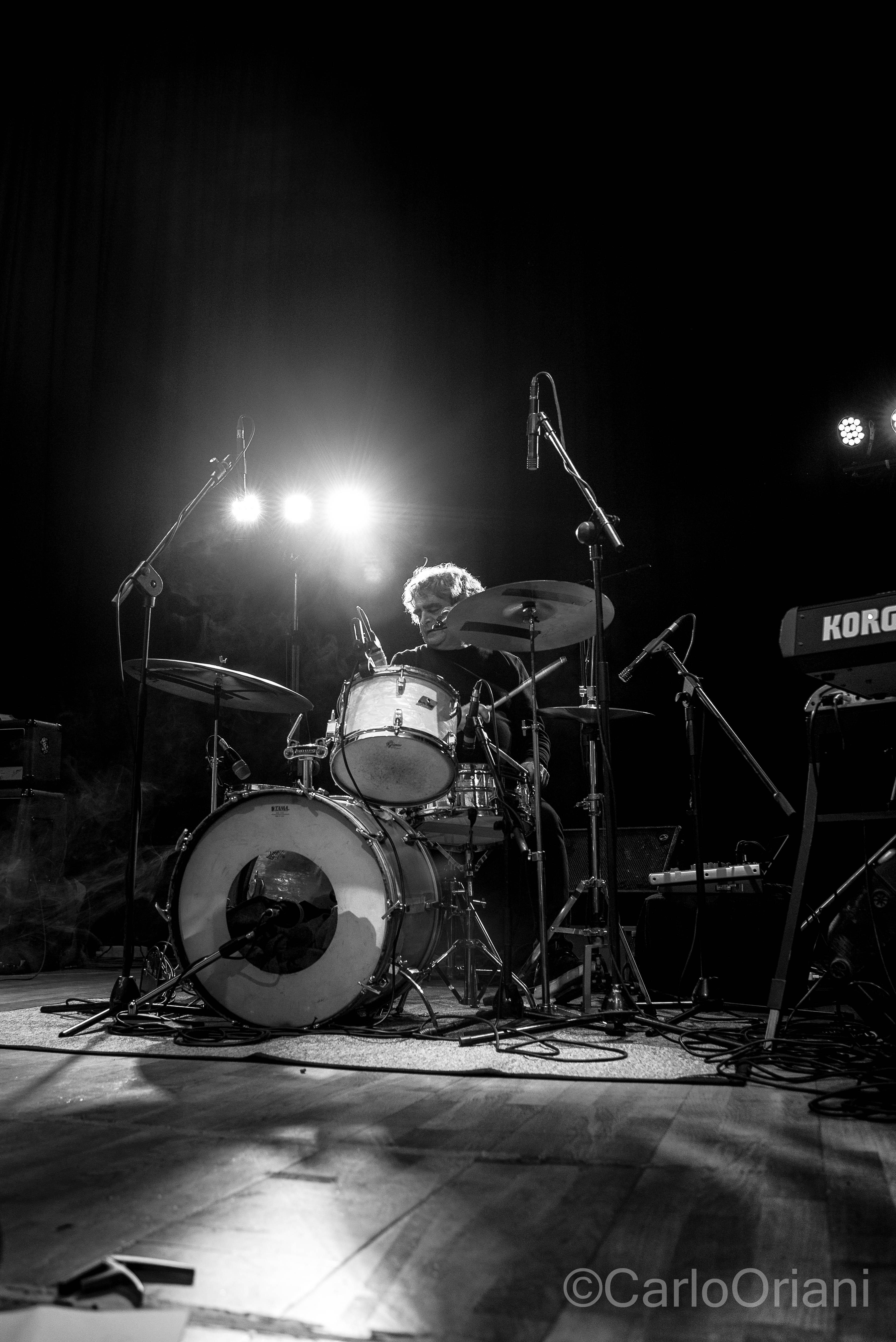 Le pareti del RAB raccontano storie. Articoli di giornale, foto, manifesti di eventi passati si sovrappongono creando un palinsesto visivo che è testimonianza di una comunità viva. È su una di queste pareti che ho appoggiato la mia Leica per catturare l’atmosfera della serata, creando quella doppia esposizione che vedete in apertura: Alice che si sovrappone agli articoli sul locale, presente e passato che si fondono in un’unica narrazione.